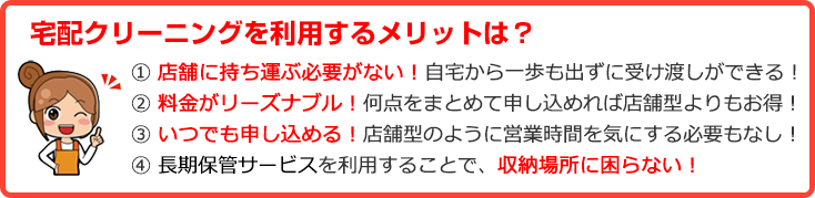 宅配クリーニングには街のクリーニング屋さんにはなかったメリットがたくさんあります!